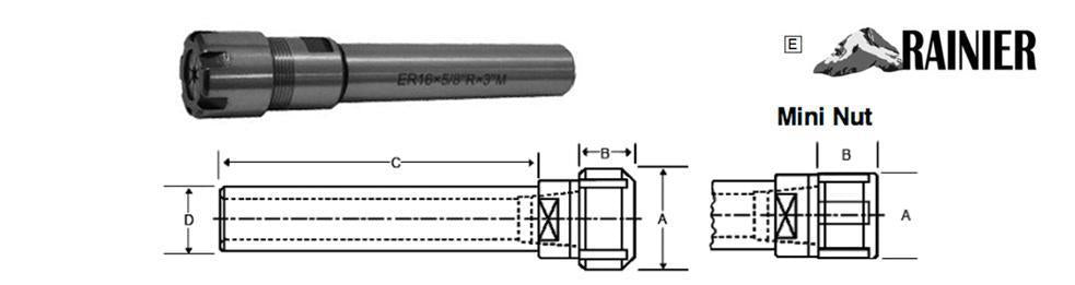 | ER16 | 0.750 | 2.50 | 1.10 | 0.67 | Hex | Flatted | S-E16F07-60H-R | M22X1.5 | CN-ER16H-K | WR-ER16H |