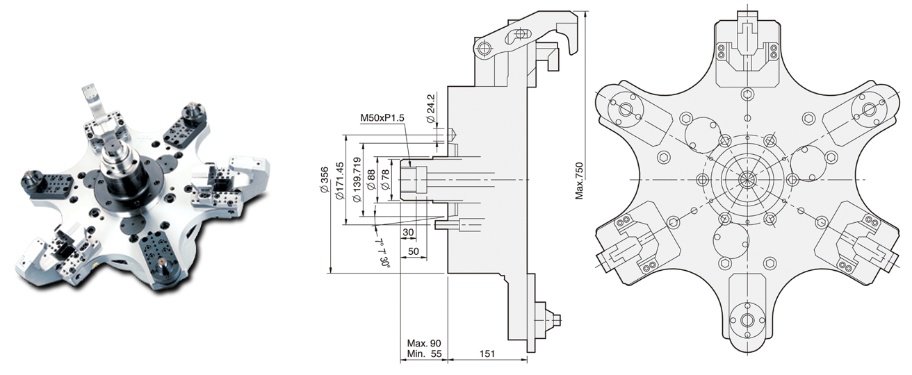- Mounting : Adaptor mounting to fit with DIN, ISO, BS, ASA, B5-9 type A spindles.