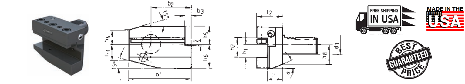 | d1 | b1 | b2 | b3 | h1 in | h1 mm | h2 | h3 | h4 | h5 | h6 | h8 | L1 | L2 | α | Part Number |