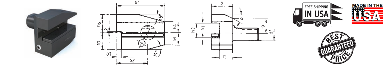 | d1 | b1 | b2 | b3 | h1 in | h1 mm | h2 | h3 | h4 | h6 | h7 | h9 | L1 | L2 | α | Part Number |