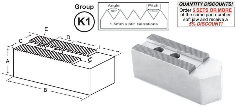 SOFT JAWS POINTED - 1.5 mm x 60° Serrations - Chuck Size 10 - 18
