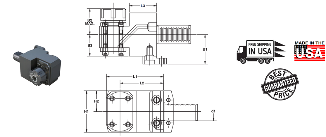 | d1 | B1 | B2 | B3 | H1 | H2 | L1 | L2 | L3 | Part Number | Price |