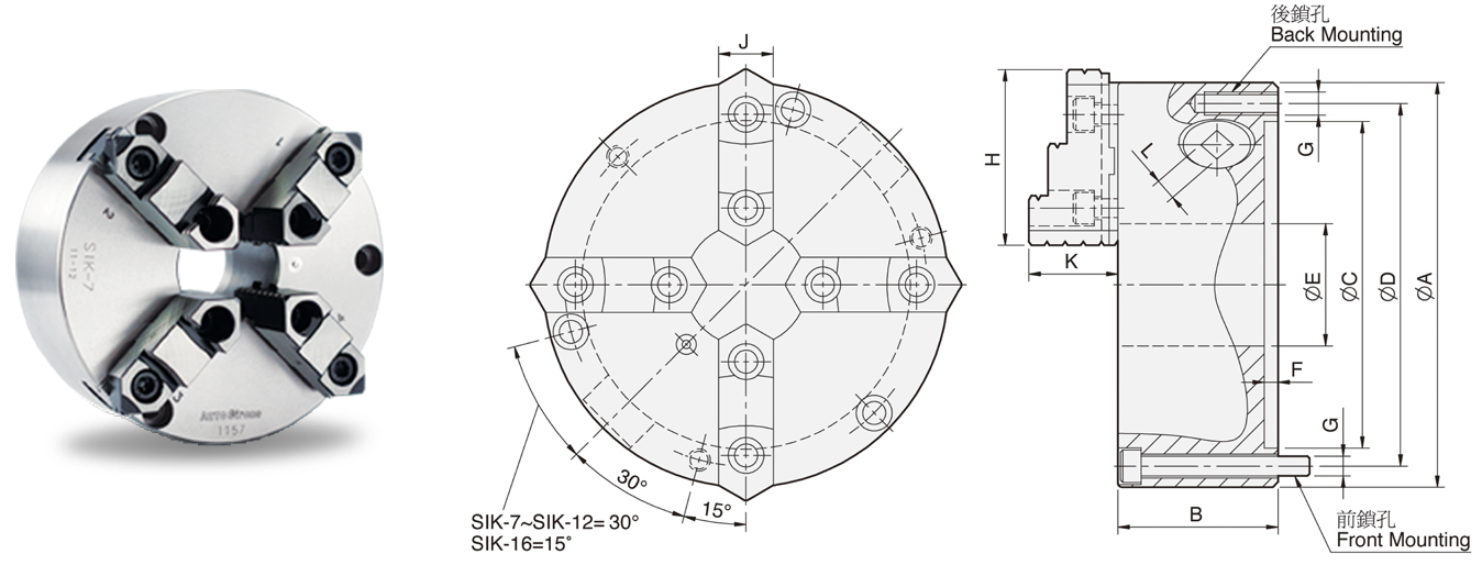 | 405 | 122 | 345 | 375 | 160 | 8.7 | — / 6-M14x130 | 148.6 | 50 | 76.1 | 15 | 25.0 | 4500 | 1500 | 108 | 1.72 | Ø30-Ø380 / Ø110-Ø360 | SIK-16 | Call or Email |
