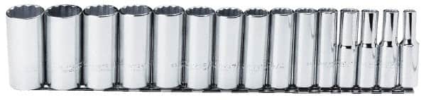 Proto - 15 Piece 1/2" Drive Chrome Finish Deep Well Socket Set - 12 Points, 3/8" to 1-1/4" Range, Inch Measurement Standard