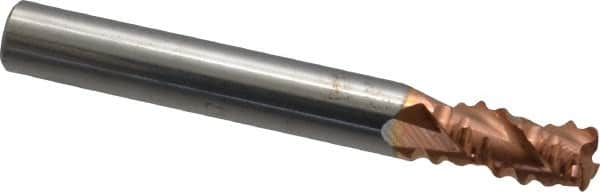 Accupro - 1/4" Diam, Coarse Pitch, 3/8" LOC, 3 Flute Solid Carbide Roughing Square End Mill - TiCN Finish, 2" OAL, 1/4" Shank Diam, Single End, Centercutting, 30° Helix