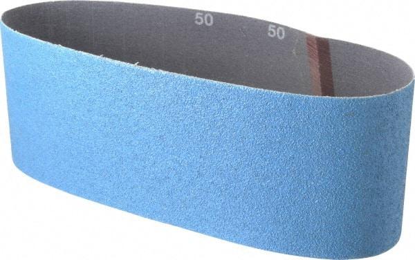 Norton - 4" Wide x 24" OAL, 50 Grit, Zirconia Alumina Abrasive Belt - Zirconia Alumina, Coarse, Coated, Y Weighted Cloth Backing, Series 3X