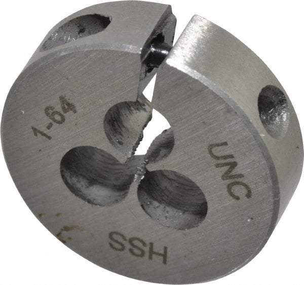 Interstate - #1-64 UNC Thread, 13/16" Outside Diam High Speed Steel Round Die - Right Hand Thread, Adjustable
