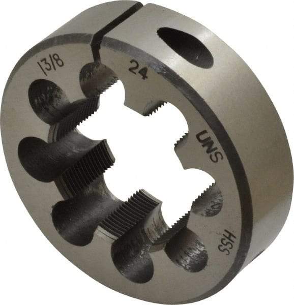 Interstate - 1-3/8 - 24 Thread, 2-1/2" Outside Diam High Speed Steel Round Die - Right Hand Thread, Adjustable