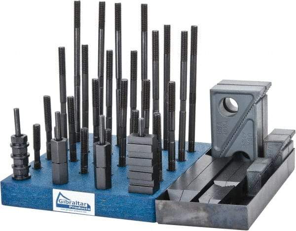 Gibraltar - 50 Piece Fixturing Step Block & Clamp Set with 1" Step Block, 1/2" T-Slot, 3/8-16 Stud Thread - 7/8" Nut Width, 3, 4, 5, 6, 7 & 8" Stud Lengths