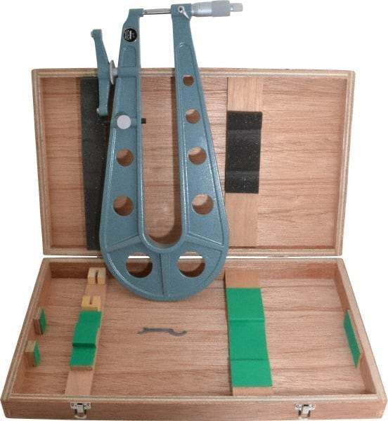 Mitutoyo - 0 to 1" Range, 0.001" Graduation, Mechanical Outside Micrometer - Ratchet Stop Thimble, 13" Throat Depth, Accurate to 0.0002"