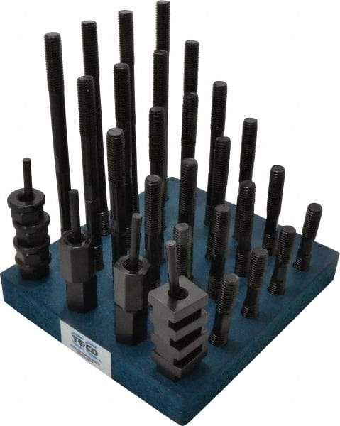 TE-CO - 38 Piece, 1/2-13 Stud, 5/8" T Slot, T Nut & Stud Kit - 1" T-Slot Nut Width, 3, 4, 5, 6, 7, 8" Stud Lengths