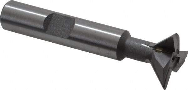 Keo - 3/4" Diam x 1/4" Width of Cut, 45° Included Angle, Carbide-Tipped Dovetail Cutter - 3/8" Shank Diam, 2-1/4" Overall Length, 0.02" Corner Radius, Weldon Flat, Uncoated - Benchmark Tooling