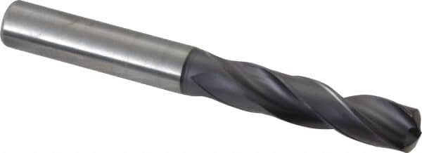 Kennametal - 9.70026mm 140° Spiral Flute Solid Carbide Screw Machine Drill Bit - Right Hand Cut, 47mm Flute Length, 89mm OAL, Standard Point, Straight Shank