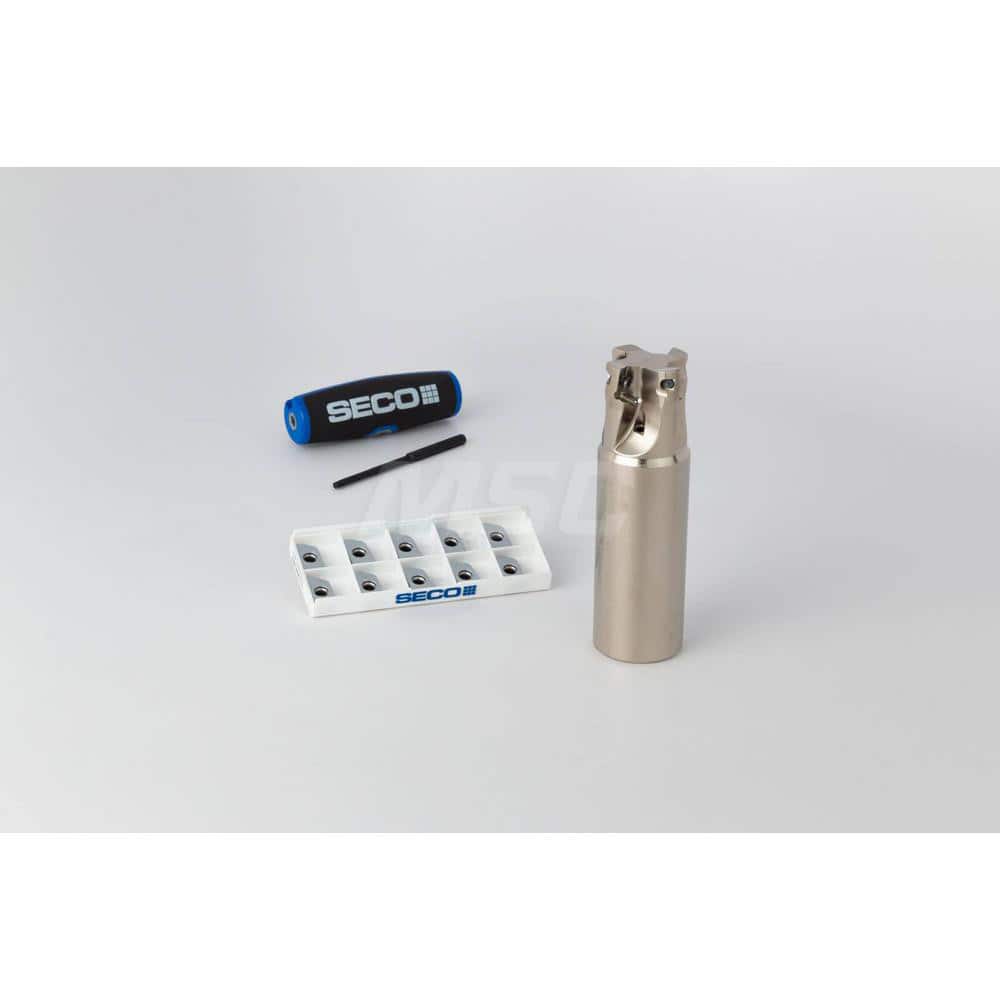 Indexable Square-Shoulder End Mill: TURBO121.25PKIT, 1.2500'' Cut Dia, 0.4330'' Max Depth of Cut, 1.2500'' Shank Dia, Weldon Flat Shank Uses 4, Normal Pressure,