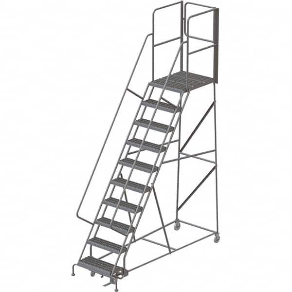 Rolling & Wall Mounted Ladders & Platforms; Type: Rolling Warehouse Ladder ; Style: Rolling Platform Ladder ; Number of Steps / Rungs: 10 ; Height (Inch): 142 ; Load Capacity (Lb.): 450 ; Base Width (Inch): 35