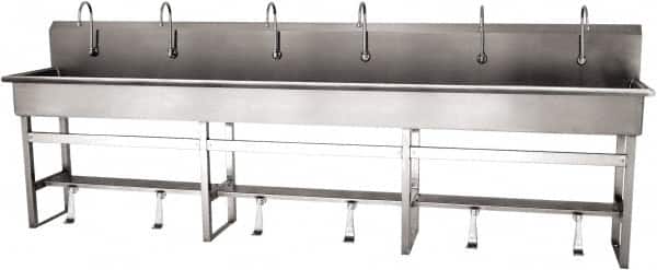 SANI-LAV - 117" Long x 16-1/2" Wide Inside, 1 Compartment, Grade 304 Stainless Steel (6) Person Wash-Station with Single Foot Valves - 16 Gauge, 120" Long x 20" Wide x 45" High Outside, 8" Deep