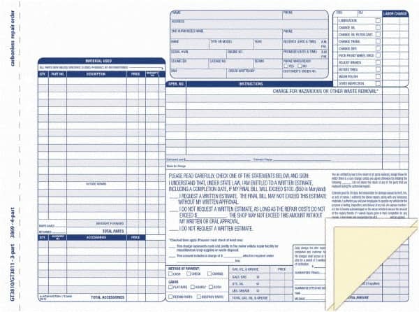 TOPS - 50 Sheet, 8-1/2 x 11-3/4", Order Forms - Blue & White