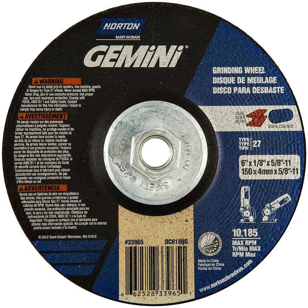 Norton - 6" Diam x 1/8" Thick x 5/8-11 Threaded Arbor, Type 27 Depressed Center Wheel