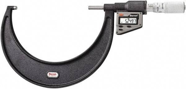 Starrett - 127 to 152 mm Range, 0.0001" Resolution, Standard Throat, Electronic Outside Micrometer - 0.0002" Accuracy, Friction Thimble, Micro Lapped Carbide Face, CR2450 Battery, Includes 3V Battery