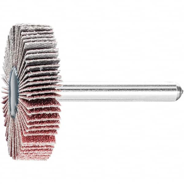 PFERD - 1-1/2" Diam x 1/2" Face Width, Aluminum Oxide Coated Mounted Flap Wheel - 1/4" Shank Mount, 80 Grit, 23,000 Max RPM