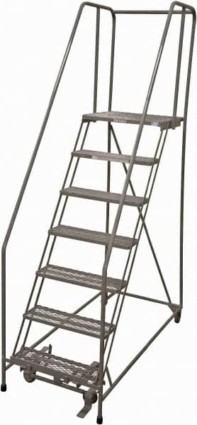 Cotterman - 100" 7 Step Rolling Warehouse Ladder - Rolling Safety Ladder, 450 Lb Capacity, 70" Platform Height, 24" Base Width x 63" Base Depth, Expanded Metal Tread - Benchmark Tooling