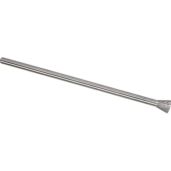 Made in USA - 1/2" Cut Diam, 1/4" Shank Diam, Inverted Cone Head Double Cut Burr - Carbide, 1/2" LOC, 6-1/2" OAL