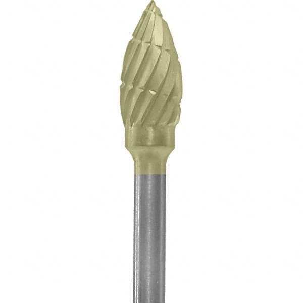 Made in USA - 3/16" Cut Diam, 0.0925" Shank Diam, Flame Head Chipbreaker Cut Burr - Carbide, 3/8" LOC, 1-7/8" OAL