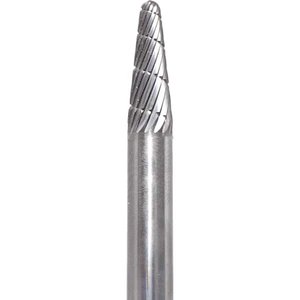 Made in USA - 6mm Cut Diam, 0.2362" Shank Diam, Cone Head Aluma Cut Burr - Carbide, 16mm LOC, 50mm OAL