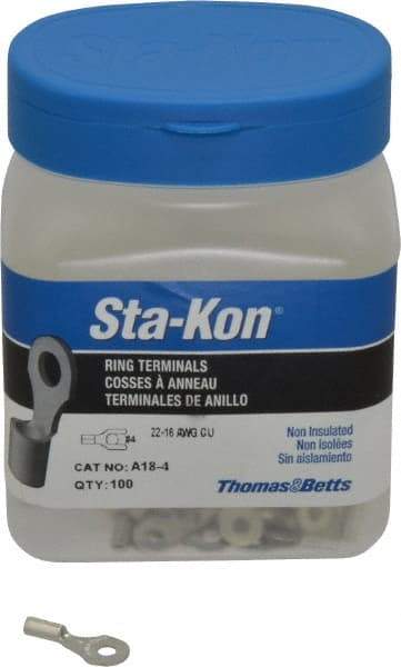 Thomas & Betts - 22-16 AWG Noninsulated Crimp Connection D Shaped Ring Terminal - #4 Stud, 3/4" OAL x 0.31" Wide, Tin Plated Copper Contact