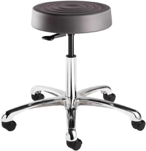 Bevco - 14 Inch Wide x 14-1/2 Inch Deep x 22-1/2 Inch High, Polished Aluminum Base, Adjustable Height Swivel Stool - Polyurethane Seat, Graphite