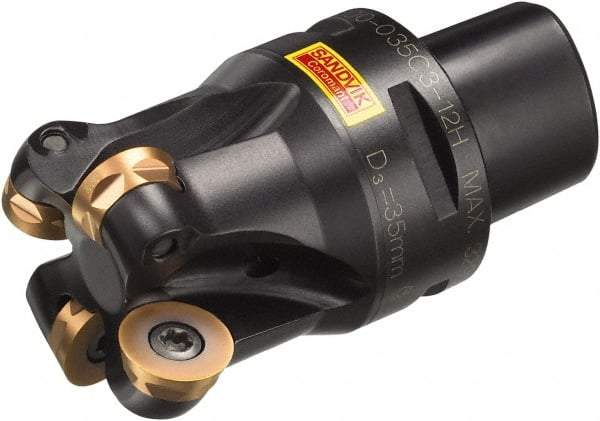 Sandvik Coromant - 5 Inserts, 1.4173" Cutter Diam, 0.315" Max Depth of Cut, Indexable High-Feed Face Mill - 3.5433" High, R300..Cx Toolholder, R300-1648.. Inserts, Series CoroMill 300