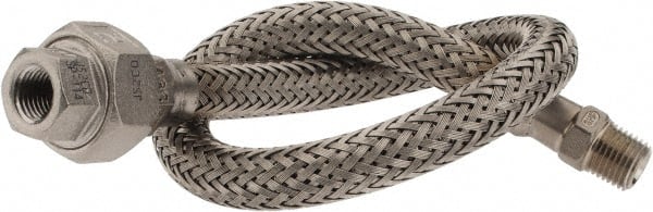 Made in USA - 18" OAL, 1/4" ID, 2,240 Max psi, Flexible Metal Hose Assembly - Benchmark Tooling