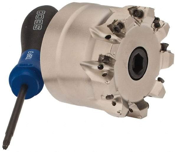 Seco - 9 Inserts, 2" Cut Diam, 3/4" Arbor Diam, 0.157" Max Depth of Cut, Indexable Square-Shoulder Face Mill - 0° Lead Angle, 1.57" High, XNEX 04.. Insert Compatibility, Through Coolant, Series Square 6