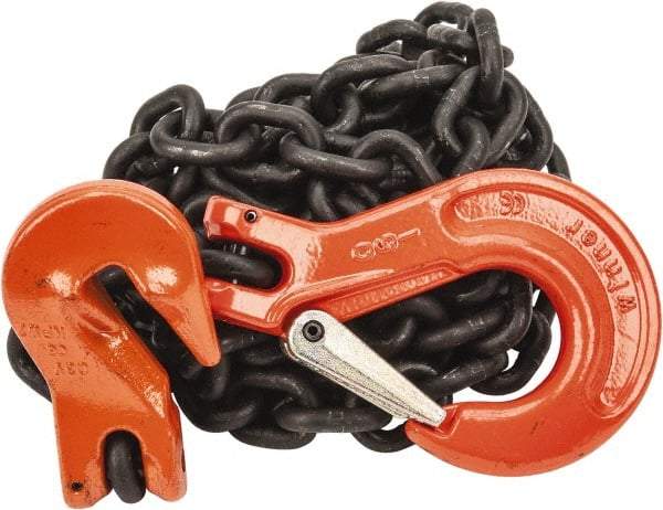 Pewag - 10' Long, 3,500 Lb Basket Capacity, 3,500 Lb Vertical Capacity, Alloy Steel Web Sling - SSG Chain Sling, 9/32" Diam Chain, Silver (Color), with Grab Hook & Sling Hook