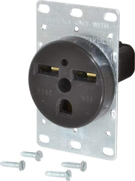 Cooper Wiring Devices - 250 VAC, 30 Amp, 6-30R NEMA Configuration, Black, Specification Grade, Self Grounding Single Receptacle - 1 Phase, 2 Poles, 3 Wire, Flush Mount, Corrosion Resistant