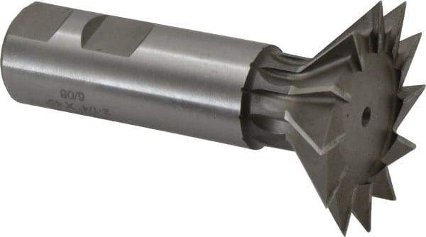 Made in USA - 2-1/4" Diam x 11/16" Width of Cut, 45° Included Angle, Cobalt Dovetail Cutter - 1" Shank Diam, 3-1/16" Shank Length, 3-3/4" Overall Length, Weldon Flat, Uncoated