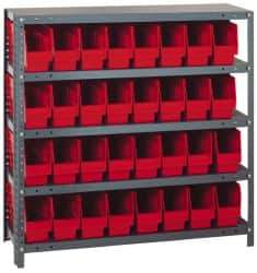 Quantum Storage - 32 Bin Store-More Shelf Bin System - 36 Inch Overall Width x 18 Inch Overall Depth x 39 Inch Overall Height, Red Polypropylene Bins