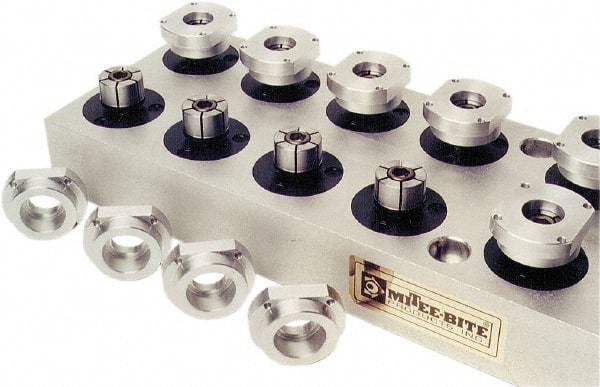 Mitee-Bite - 1.15 to 4.06" Expansion Diam, 10,000 Lb Holding Force, M6 Mounting Screw, M16 Center Screw, Steel ID Expansion Clamps - 5.232" Flange Diam, 0.31" Flange Thickness, 4.648" Mount Hole Diam, 3 Mount Holes, 1.79" Overall Height, 224 Ft/Lb Torque