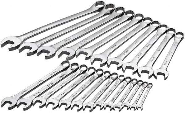 SK - 23 Piece, 8mm to 32mm, 12 Point Combination Wrench Set - Metric Measurement Standard, Chrome Finish, Comes in Rack