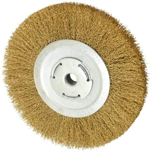 Value Collection - 8" OD, 5/8" Arbor Hole, Crimped Brass Wheel Brush - 1/2" Face Width, 1-3/4" Trim Length, 0.02" Filament Diam, 4,500 RPM