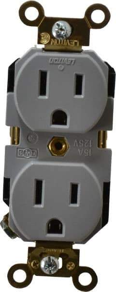 Leviton - 125 VAC, 15 Amp, 5-15R NEMA Configuration, Gray, Industrial Grade, Self Grounding Duplex Receptacle - 1 Phase, 2 Poles, 3 Wire, Flush Mount, Impact Resistant