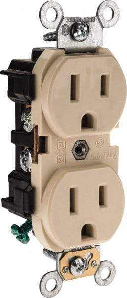 Leviton - 125 VAC, 15 Amp, 5-15R NEMA Configuration, Ivory, Industrial Grade, Self Grounding Duplex Receptacle - 1 Phase, 2 Poles, 3 Wire, Flush Mount, Impact Resistant