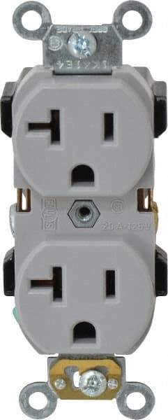 Leviton - 125 VAC, 20 Amp, 5-20R NEMA Configuration, Gray, Industrial Grade, Self Grounding Duplex Receptacle - 1 Phase, 2 Poles, 3 Wire, Flush Mount, Impact and Tamper Resistant
