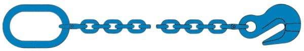Pewag - 5' Long, 5,200 Lb Basket Capacity, 5,200 Lb Vertical Capacity, 1 Ply, Alloy Steel Web Sling - 4,500 Lb Choker Capacity, SOG Chain Sling, 9/32" Diam Chain, Blue, with Grab Hook & Master Link