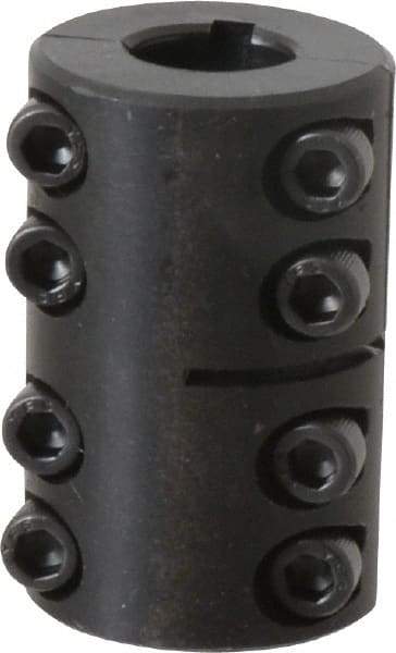 Climax Metal Products - 1/2" Inside x 1-1/8" Outside Diam, Two Piece Rigid Coupling with Keyway - 1-3/4" Long x 1/8" Keyway Width x 1/16" Keyway Depth