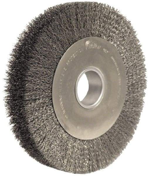 Weiler - 10" OD, 2" Arbor Hole, Crimped Steel Wheel Brush - 2" Face Width, 1-7/8" Trim Length, 0.02" Filament Diam, 4,000 RPM