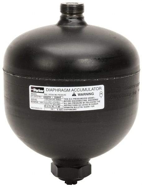 Parker - 85 Lb. Capacity, 3,620 psi Max Working Pressure, 7.95" High, Hydrin Diaphragm Accumulator - 5.98" Diam, 8 SAE Port Thread