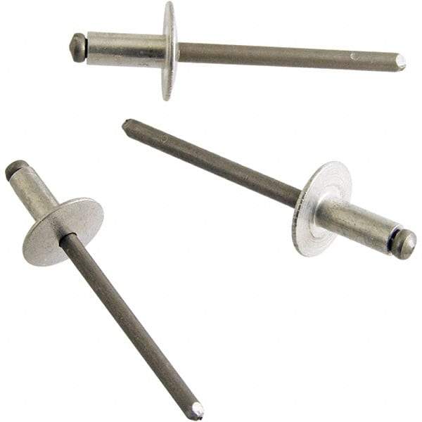 STANLEY Engineered Fastening - Size 6 Large Flange Head Aluminum Open End Blind Rivet - Steel Mandrel, 0.126" to 1/4" Grip, 3/16" Head Diam, 0.192" to 0.196" Hole Diam, 0.116" Body Diam