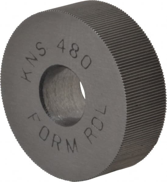 Made in USA - 3/4" Diam, 70° Tooth Angle, 80 TPI, Standard (Shape), Form Type High Speed Steel Straight Knurl Wheel - 1/4" Face Width, 1/4" Hole, Circular Pitch, Bright Finish, Series KN