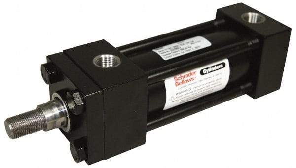Schrader Bellows - 4" Bore, 1-3/4" Rod Diam, Double Acting NFPA Tie Rod Cylinder - 8" Stroke Length, 1-1/4-12 Rod Thread, 17-5/8" OAL, Prepared for Bolt on Mount
